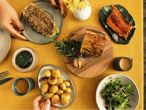 The centrepiece is a 'Stuffed shoulder of lamb' - perfect for sharing - accompanied by sides that bring everyone together.