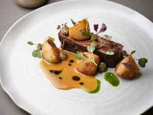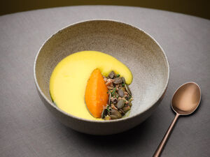 Simon Rogan Dark Chocolate Fondant with Marigold Custard