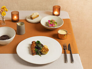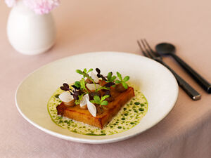 Ham & Cheese Pudding, Birch Sap, Black Garlic and Spenwood